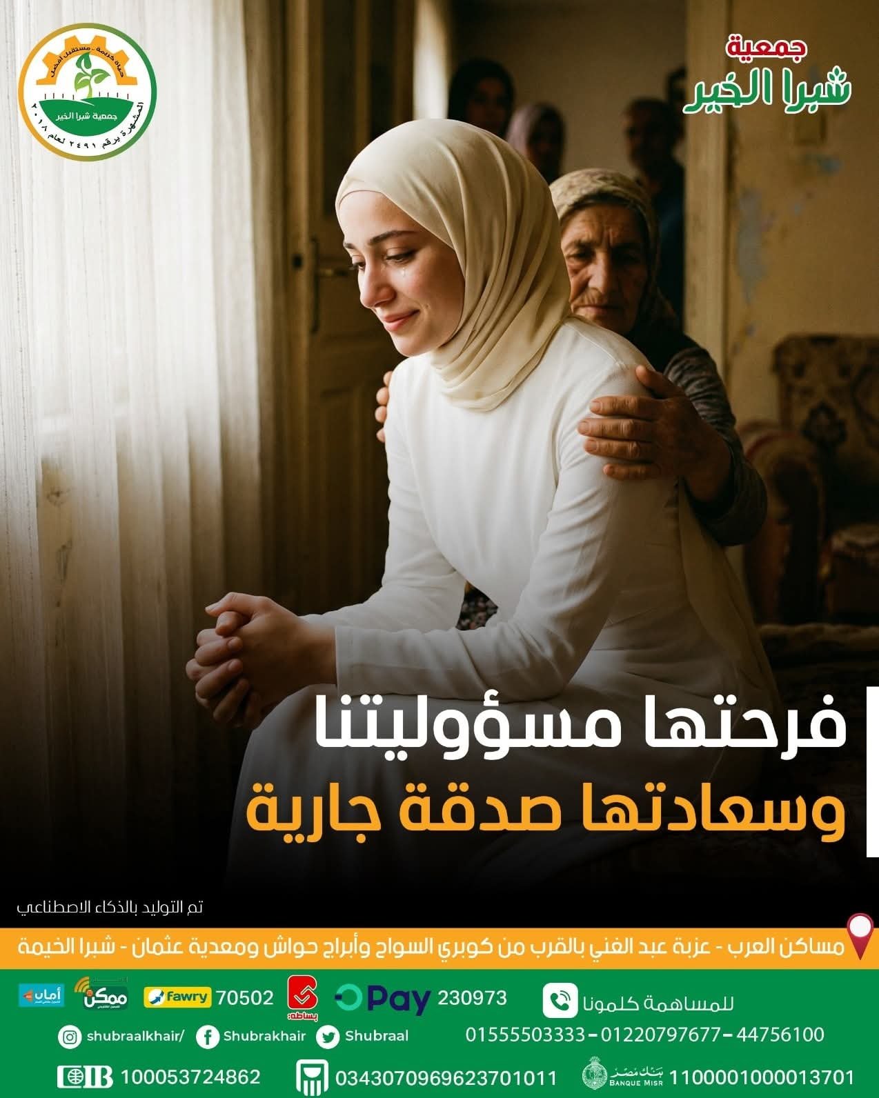 عارفين إن في ناس في عز البرد والمطر عايشة من غير سقف يحميها؟ليل طويل وبرد قارس، ومطر نازل، ومفيش سقف يلمّهم.ساعدونا نوفّر لهم سقف يحميهموتبرعك مع جمعية شبرا الخير هيوصل لمستحقيه فعلًا.تبرعك رحمة… وسقفهم أمان📞 للمساهمة بزكاة المال او الصدقات :01555503333📲 فودافون كاش- كود التحويل: 9198#🏦 التحويل البنكي:• البنك الأهلي المصري:0343070969623701011• البنك التجاري الدولي (CIB):100053724862💳…